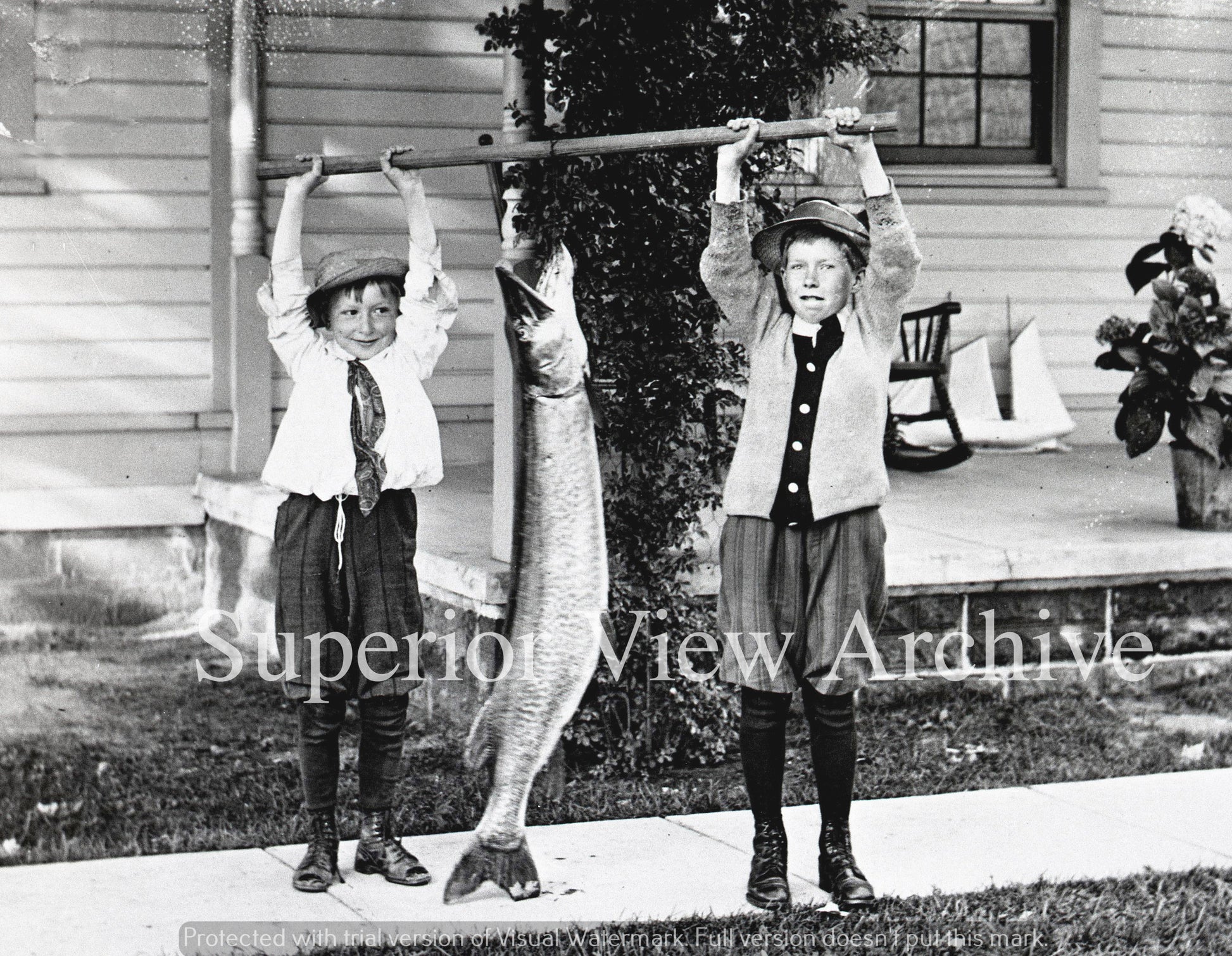 Old Time Fishing Huge Muskie Held by Little Boys in Knickers Big Musky Fish