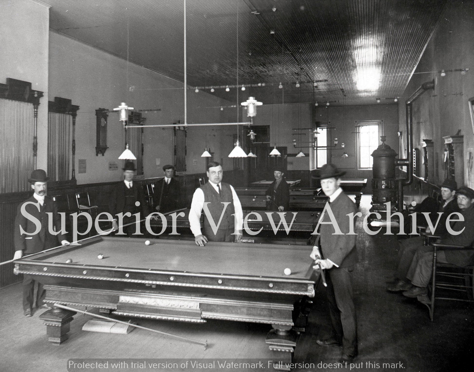 Old Time Pool Hall Billiard Tables Vintage Pool Tables Woodstove Men Playing