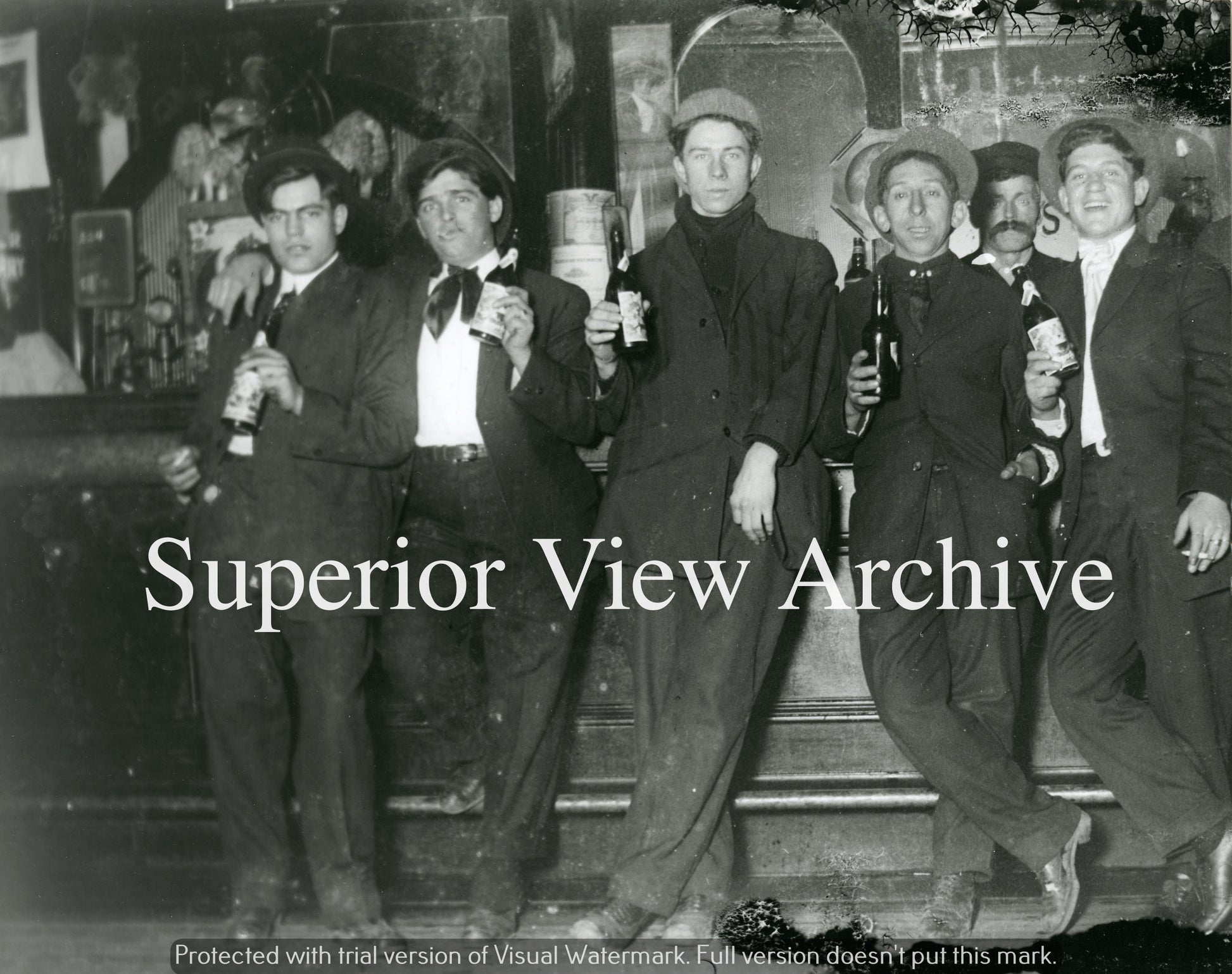 Old Time Saloon Beer Drinking Buddies Drunk Holding Beer Bottles Vintage 1890