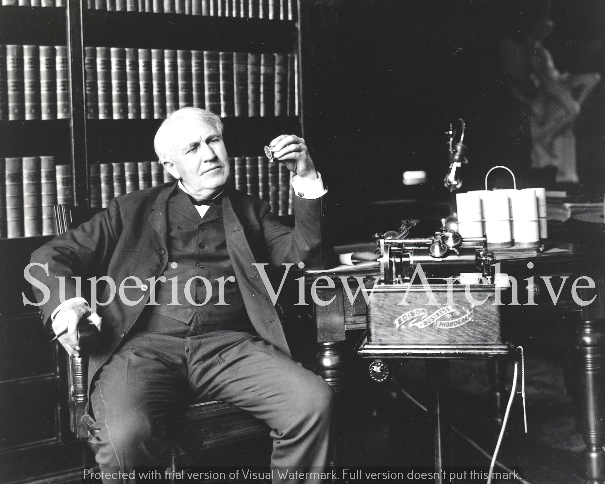 Thomas Edison With His Edison Phonograph Electric Light Bulb Edison Library