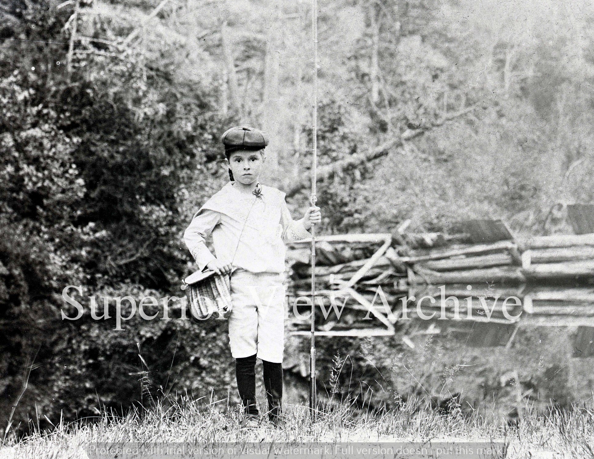 Vintage Fishing Girl With Bamboo Rod & Creel Knickers & Cap Antique Fishing
