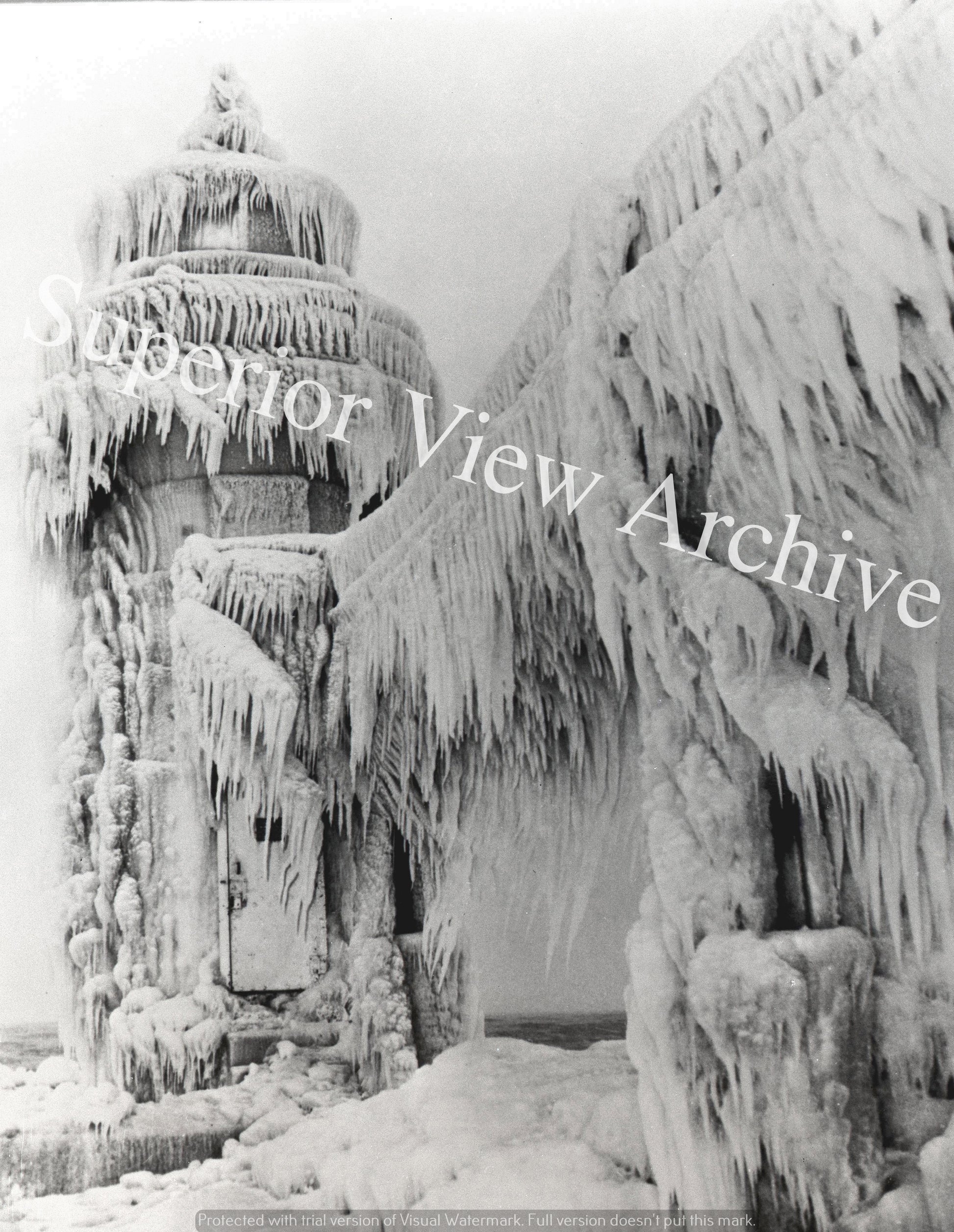 Old Time Frozen Lighthouse Lake Michigan